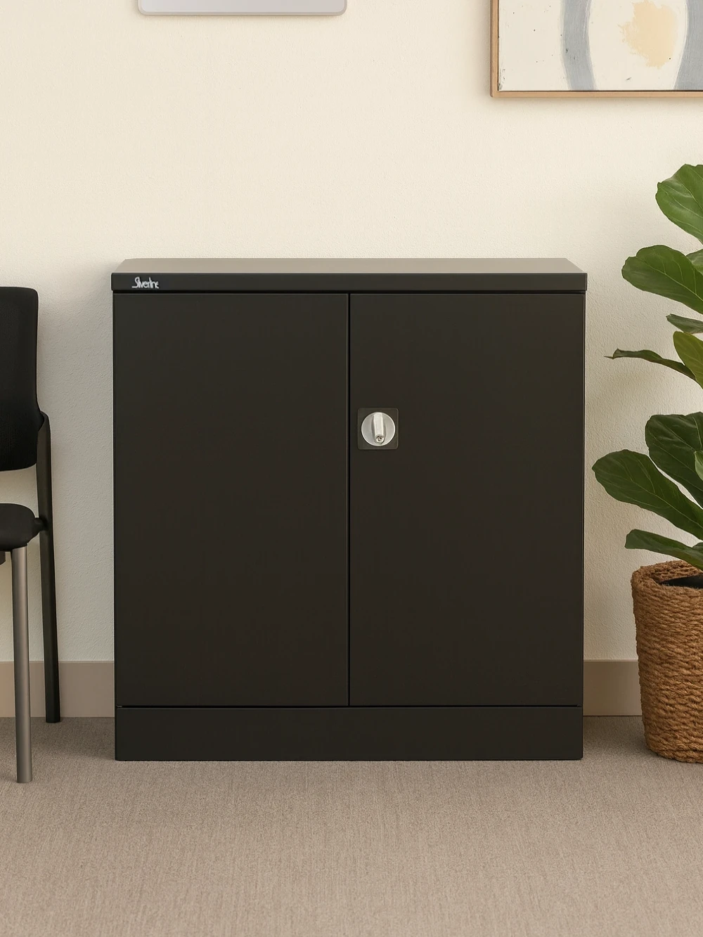 - Office Storage Qube 2 Door Metal Office Cupboard Black 1020mm QC1BLK