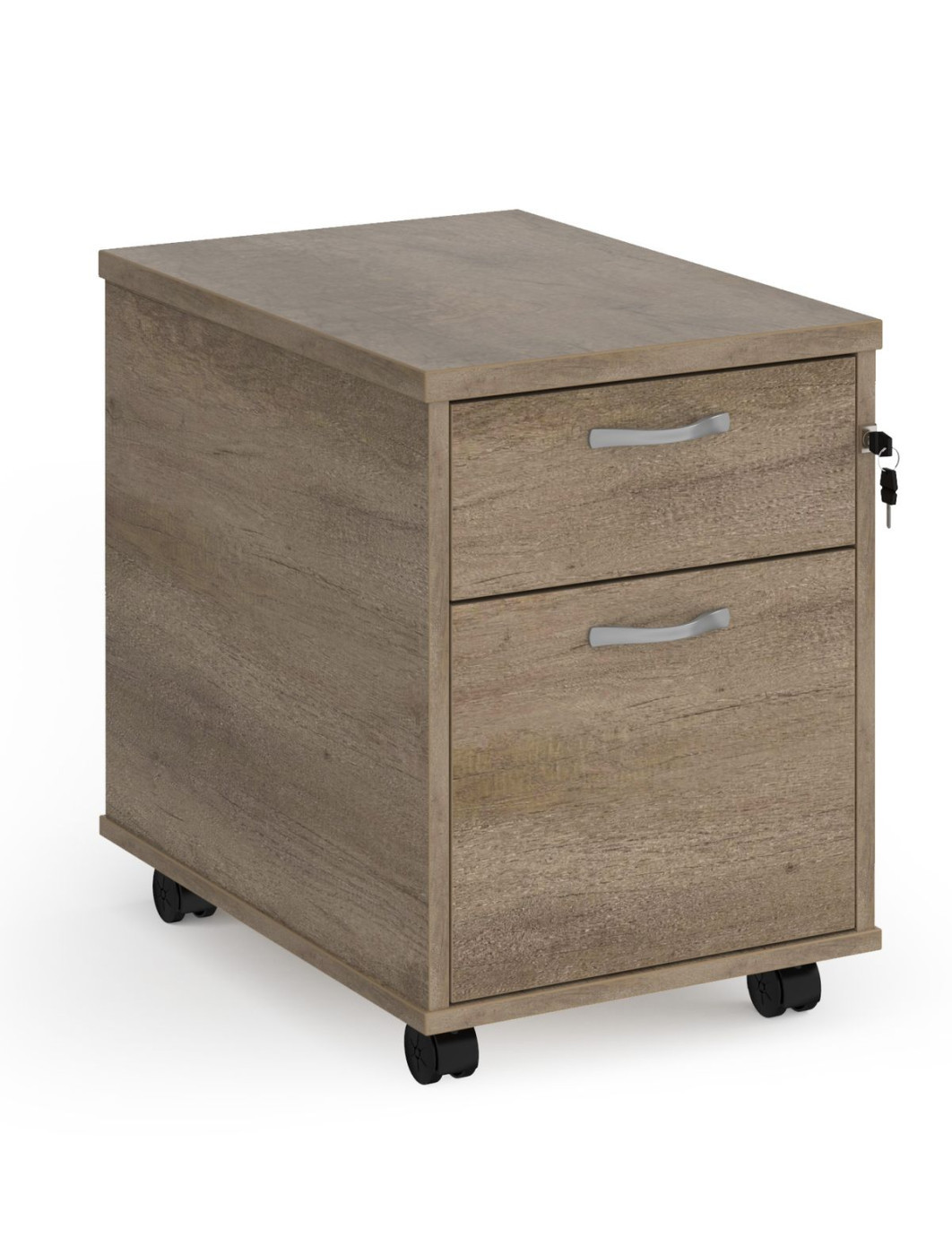 - Two drawer mobile pedestal with one shallow and one filing drawer which accepts both A4 and foolscap files.