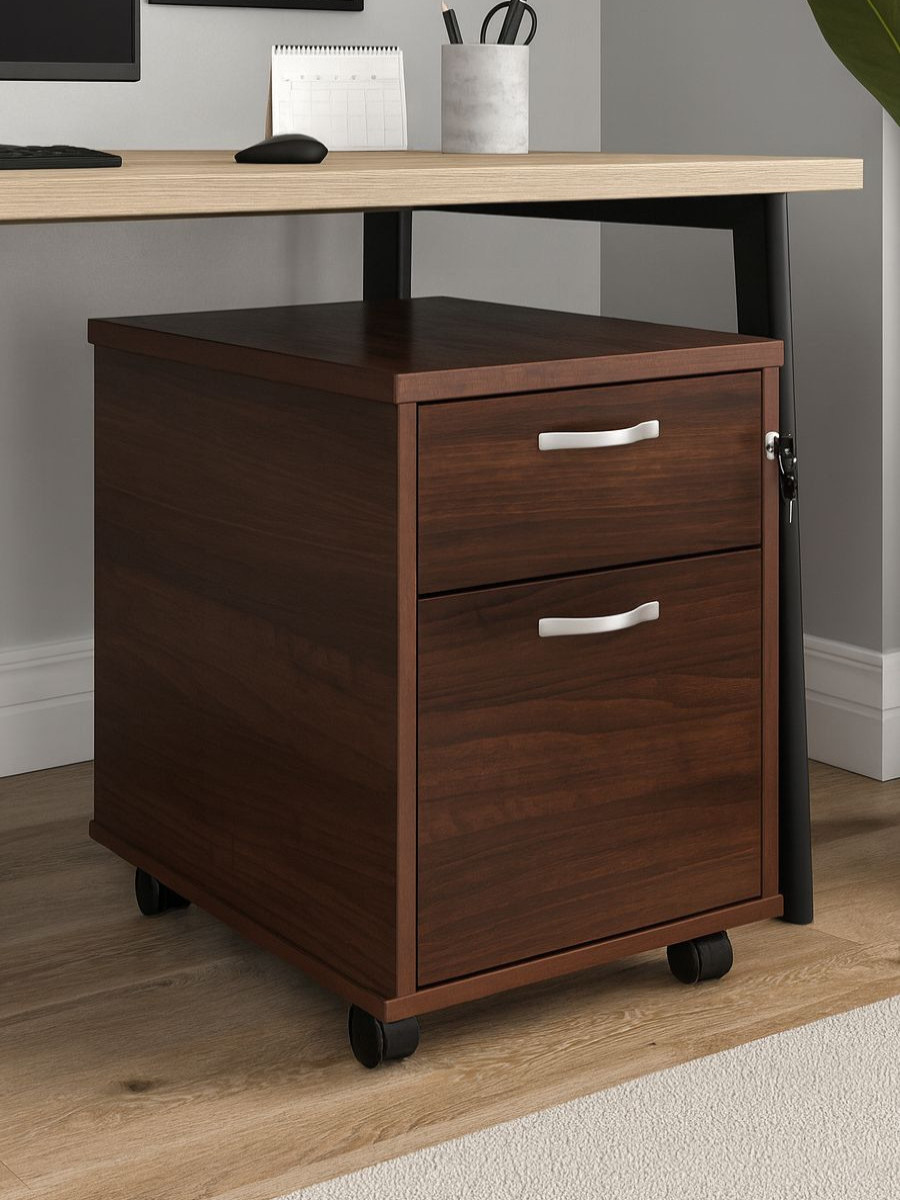 - Two drawer mobile pedestal with one shallow and one filing drawer which accepts both A4 and foolscap files.